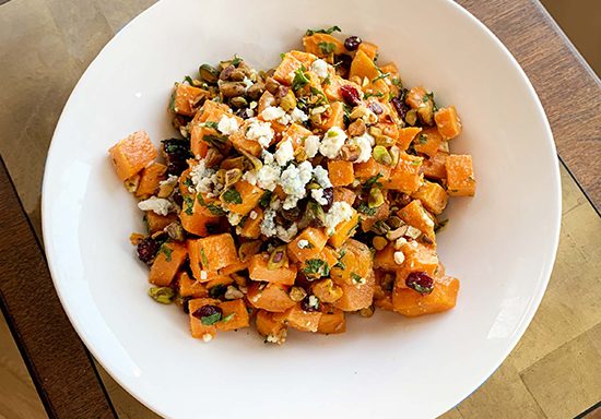 SWEET POTATO, CRUMBLED BLUE CHEESE & DRIED CRANBERRY SALAD By Foodie’s Chef Laura Brennan